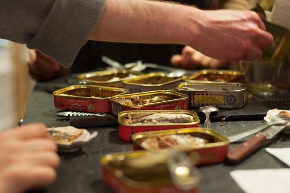 De 12 trin til at bevare gode sardiner i en dåse. Levering og indsættelse » Fiskene losses, kontrolleres og vejes. Dette er den eneste måde at bestemme præcis, hvor lang tid syltning og madlavning vil tage. Så er sardinerne helt saltede, som de er. Rensningen » Sardinkvinderne behandler hver sardin individuelt, halshugger og renser dem omhyggeligt. De anbringes derefter på gitre og omhyggeligt skylles ned med vand. I øvrigt bliver 100 % af fiskeaffaldet genanvendt. Nogle går til sports- og professionelle fiskere, der bruger det som madding. Resten afhentes af et specialfirma. Tørringen » Sardinerne tørres i en tunnel med ventilationssystem i flere minutter. Den friturestegning » Sardinerne er stegt i ren solsikkeolie, som løbende fornyes for at garantere produktets ensartede kvalitet. Den brugte fritureolie indsamles af en professionel genbruger og bruges derefter til at opvarme drivhuse. Juicing » Stadig liggende på deres stativ, bliver sardinerne nu juicet. Juicing er et meget vigtigt skridt i hele kvalitetsprocessen. Krydderiet » Afhængigt af opskriften er de tomme sardindåser nu fyldt med de passende krydderier og aromater. Konservesen » Nu tages sardinerne af gitteret én efter én og udsættes for omhyggelig udvælgelse. Kun de bedste kommer med i dåserne. Nu skæres hoveder og halefinner af, inden fiskene lægges i dåserne i modsat retning. Dette trin kræver stor omhu fra sardinkvinderne, da de med et blik skal kunne se, hvilke sardiner der tilsammen udgør en flot konserves. De mest erfarne af dem fjerner samtidig også hovedknoglerne, hvilket resulterer i helt udbenede sardiner. Tilsætning af olie » Afhængigt af opskriften tilsættes olie til dåsemad: frugtagtig eller semi-frugtagtig ekstra jomfru olivenolie eller ren jordnøddeolie. Forsegling af dåsevarer » Nu er dåsevarerne hermetisk lukkede. Til dette formål krympes låget af en maskine, som lukker mellem 300 og 500 dåser i timen. Rengøring og datering af dåsevarer » De forseglede dåsevarer føres gennem en tunnel, hvor de først skylles og derefter rengøres grundigt. De markeres derefter med forskellige datoer (bedst før dato osv.) for at sikre sporbarhed. Steriliseringen » Under hver sådan cyklus (fra levering til forsegling af dåsevarerne) dokumenteres parametrene for varighed og temperatur og verificeres systematisk. Hver steriliseringsproces kontrolleres i laboratoriet af vores kvalitetssikringsservice. Den sidste kontrol af dåsevarerne » Dåsevarerne kontrolleres for at sikre, at de lever op til vores standarder, er daterede, godt forseglede og ikke beskadigede.