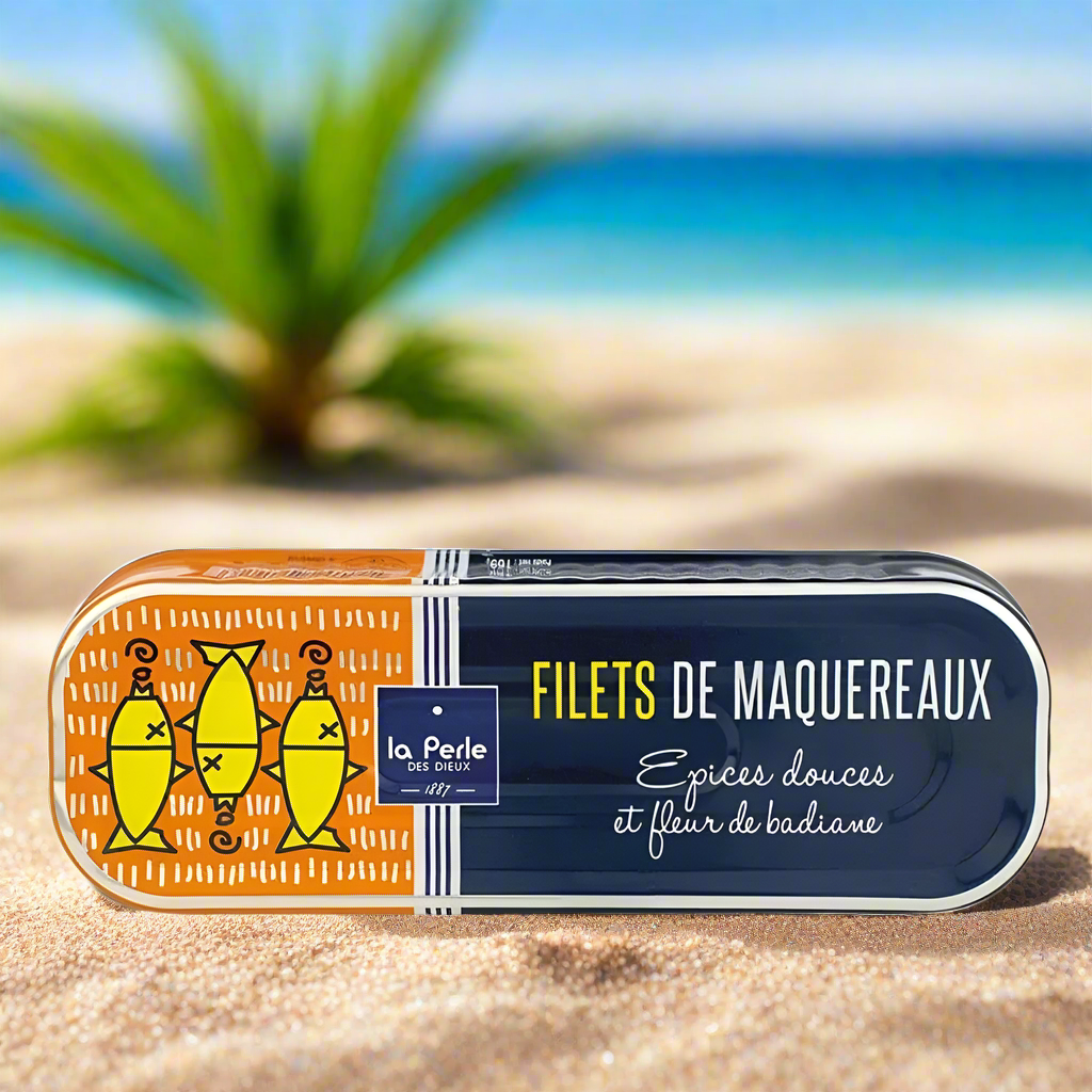 Makrellen, der bruges i denne opskrift, er håndfanget i Atlanterhavet, Den Engelske Kanal og Nordsøen, omhyggeligt tilberedt, pakket og pyntet med stjerneanisblomster.