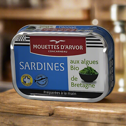 This is the new variety from Les Mouettes d'Arvor. Not only delicious, but also very healthy: sardines contain Omega 3 fats, the algae are full of nutritional values.