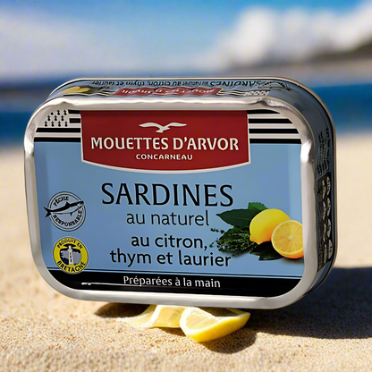 High-quality sardines with fruity-fresh lemon paired with delicious thyme and a hint of bay leaf – that's the new variety from Les Mouettes d'Arvor.