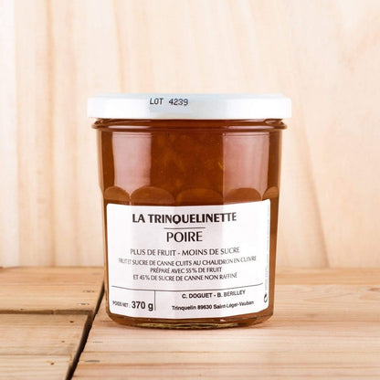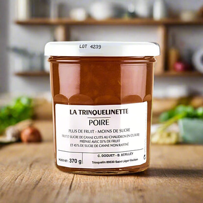 Entdecken Sie die leckere Birnen-Konfitüre von La Trinquelinette – ein Dauerbrenner des Hauses … mit dem unverfälschten Geschmack frischer Birnen und leckeren Stückchen!