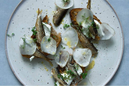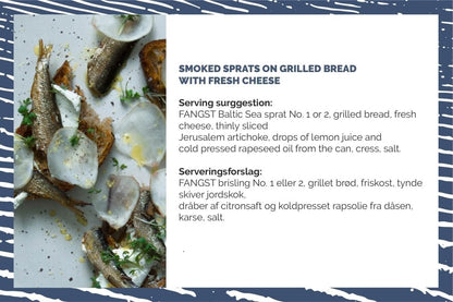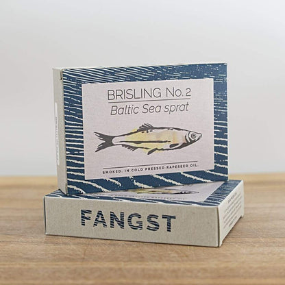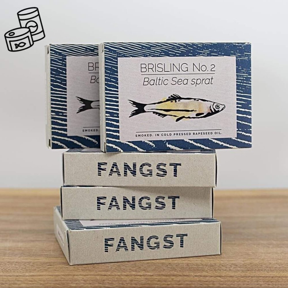 Brisling" ist ein kleiner Fisch, der traditionell in großer Zahl an der skandinavischen und baltischen Küste angelandet wurde. Hier wurde er von Hand zubereitet und in Dosen konserviert, um als nordische Version der Sardine verkauft zu werden. Die "Brisling" von FANGST ist unser Beitrag zur Wiederbelebung und Schaffung eines neuen Platzes für diesen feinen Fisch als "nordische Sardine“.