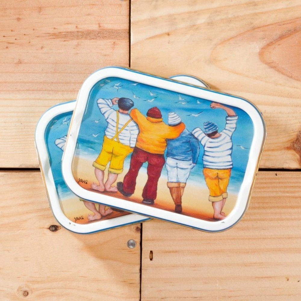 Diese Sardinendose wurde von dem Maler Yan aus Quiberon illustriert, als Hommage an seine Freunde, mit denen er in der Bar La Marine in Quiberon, einer echten Institution auf der Halbinsel, bei einem Glas Muscadet die Welt neu zu ordnen pflegte.