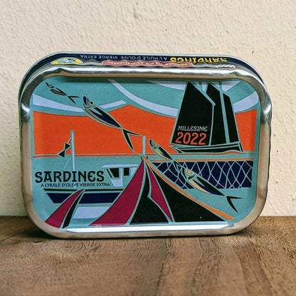 Diese Sardinen wurden 2021 vor Concarneau gefangen und fangfrisch in erstklassigem Olivenöl eingelegt.