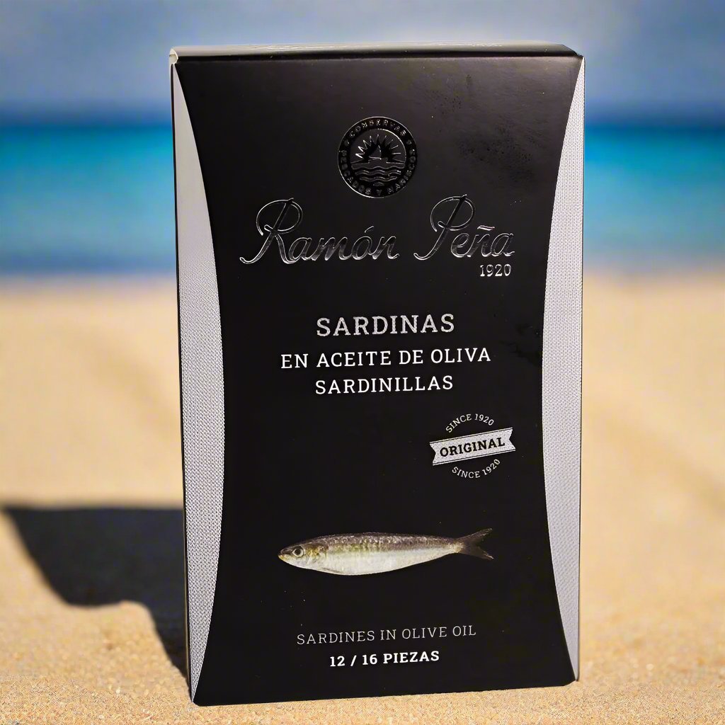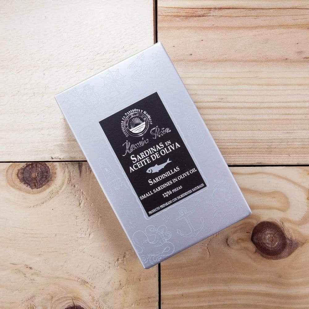 Frisch gefangene kleine Sardinen aus den Buchten Galiziens. Morgens am Hafen eingekauft und sofort verarbeitet. Bei Ramón Peña ist alles liebevolle Handarbeit – bis hin zum Verpacken der Dose.
