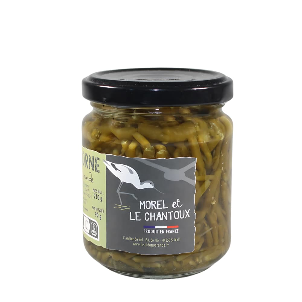 Salicorne en marinade ist eine französische Delikatesse aus eingelegtem Queller (Salicornia europaea), auch bekannt als Meeresspargel.