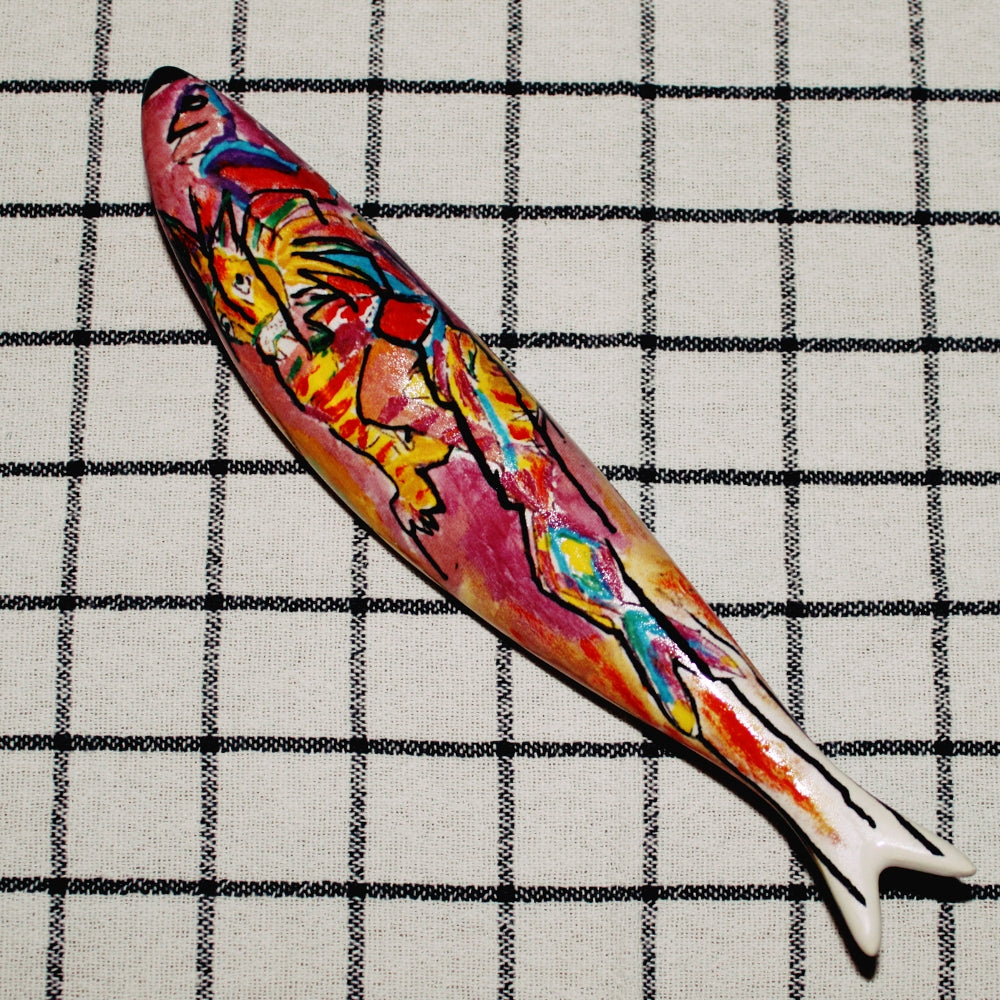 Die Sardinha de Lisboa ist eine handbemalte Keramikfigur in Form einer Sardine. Sie ist in lebendigen Farben gestaltet und mit verschiedenen Mustern, Designs und Motiven verziert.