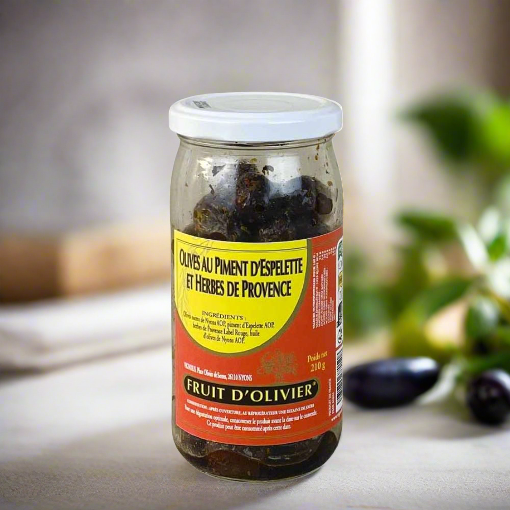 Schwarze Nyons-Oliven AOP mit Piment d'Espelette