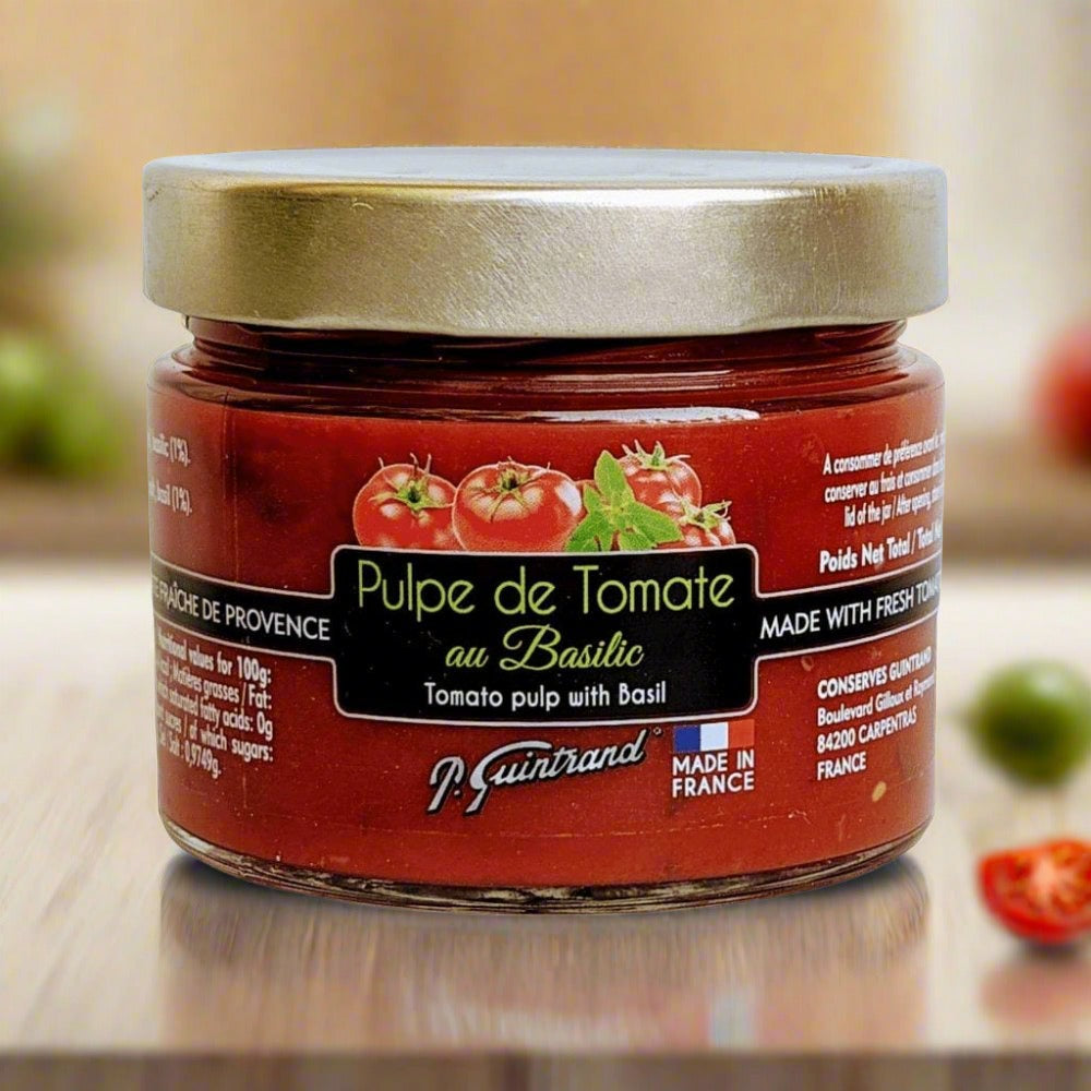 Traditionelle Sauce aus der Provence, ziemlich dick, homogen, auf der Grundlage von kleinen Tomatenstücken, die durch ein leichtes Tomatenpüree gebunden, das mit einem Zweig frischen Basilikum verfeinert wird.