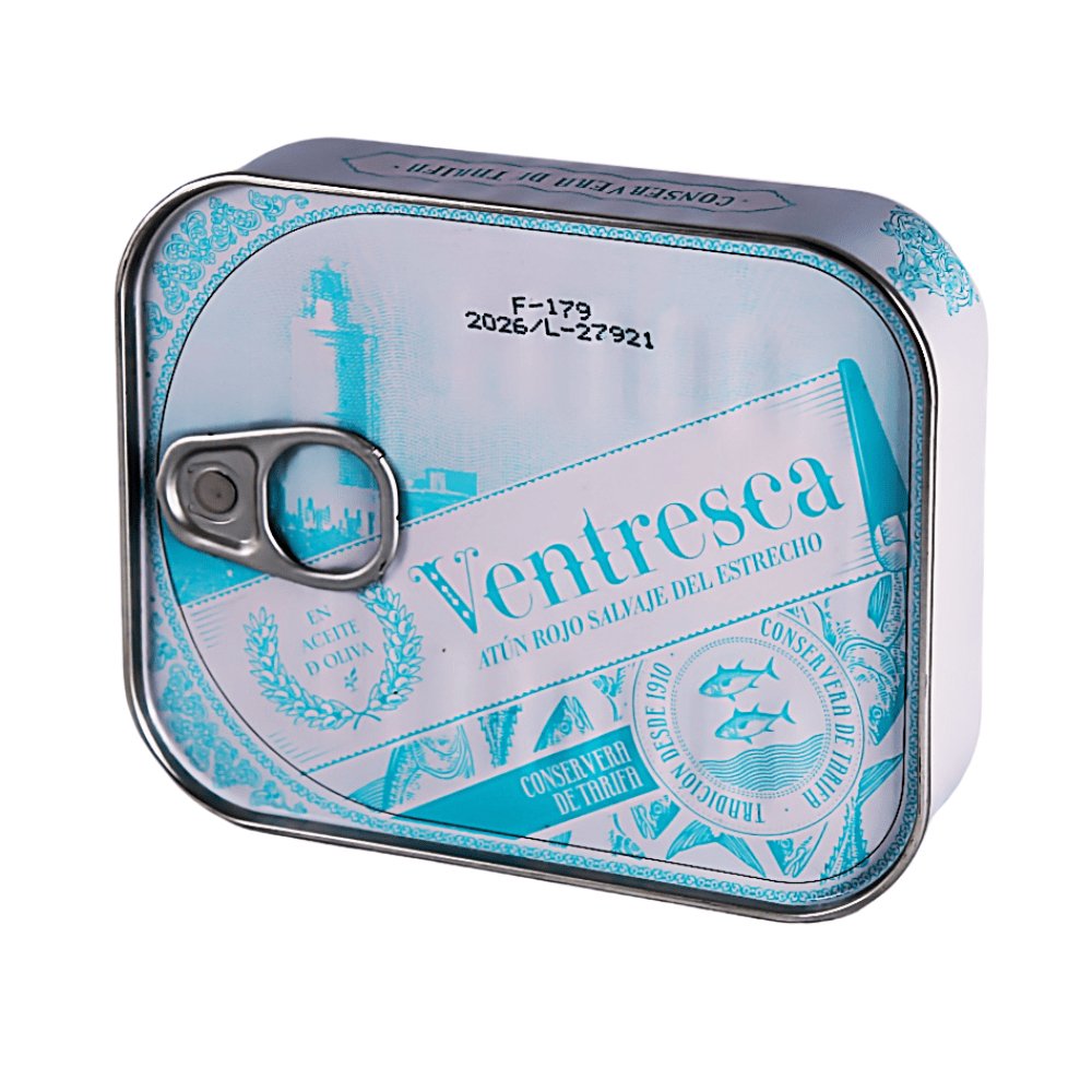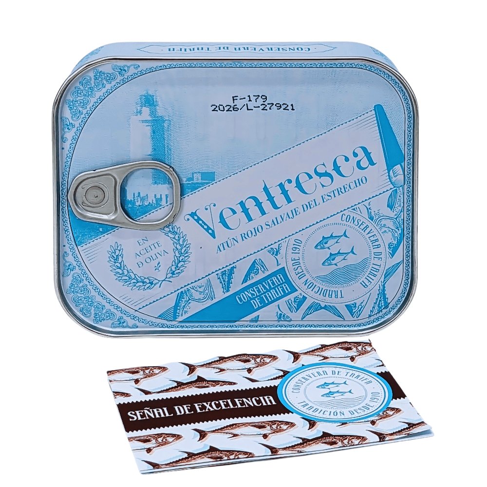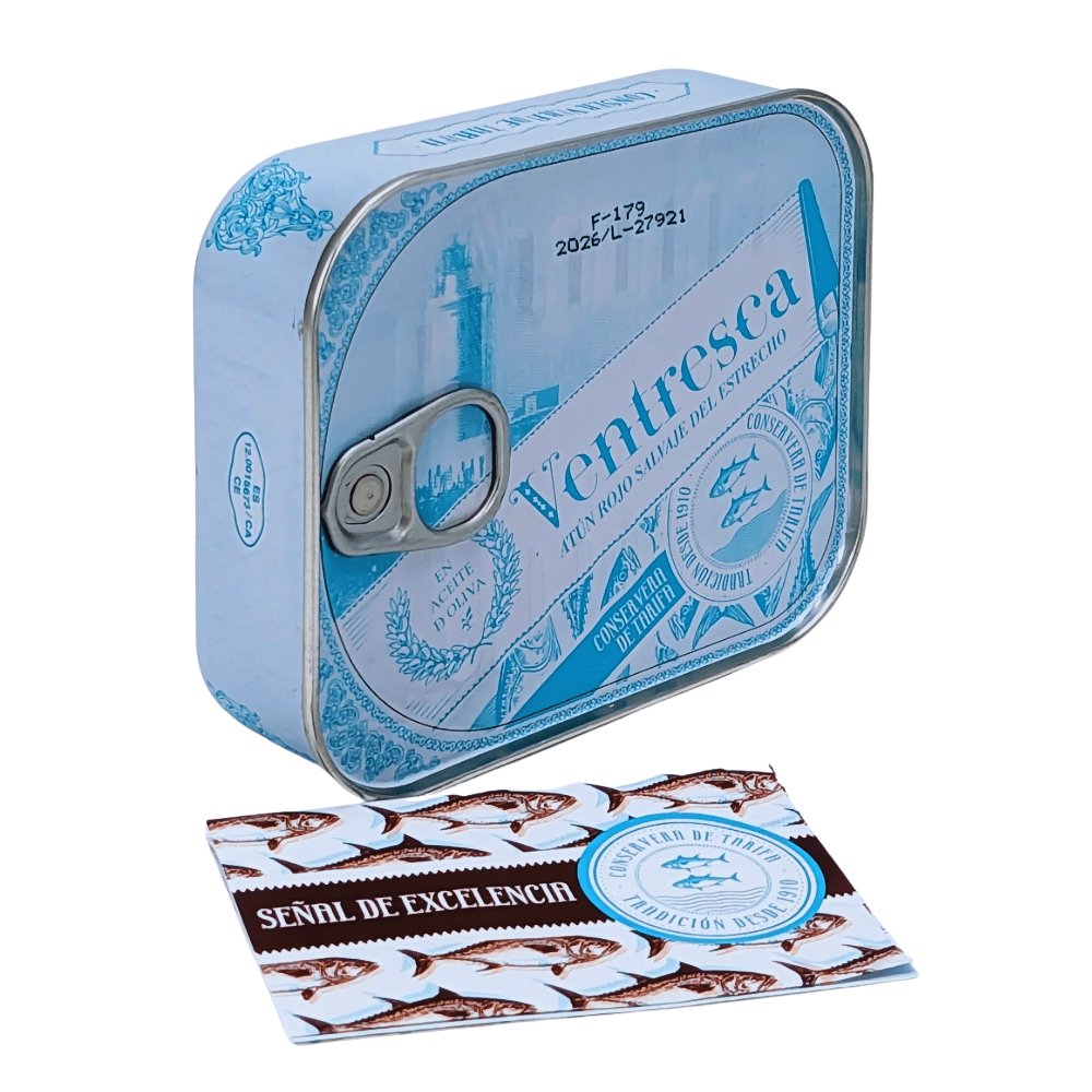 Die Konserven von Tarifa enthalten die edelsten Stücke des besten wilden Roten Thunfischs der Meerenge: Morrillo, mit einem intensiven Geschmack; Tarantelo, mit einer perfekten Ausgewogenheit und Ventresca, mit einer milden Intensität.
